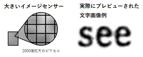 センサーが大きく、1つ1つのピクセルが大きいほど、光を多く取り込み、文字や細部を鮮明に再現できます。